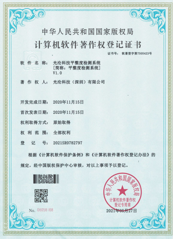 光淪科技工業機器人視覺相機獲得了多項國家專利及軟件著作權,公司自成立以來一直堅持自主知識產權研發工業3D相機!